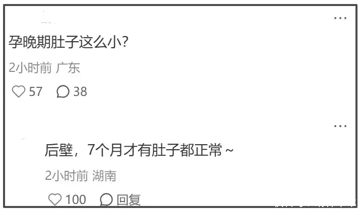 网友在看到马筱梅公开孕肚后的第一反应就是惊讶,感慨着“孕晚期肚子这么小”,但有生育经验的网友也为之答疑解惑了,胎盘后壁的孕妇通常都不显怀,孕肚自然看上去也不大。马筱梅曾在直播中提过自己怀孕之后胖了七公斤左右,现在体重大概在51公斤左右。