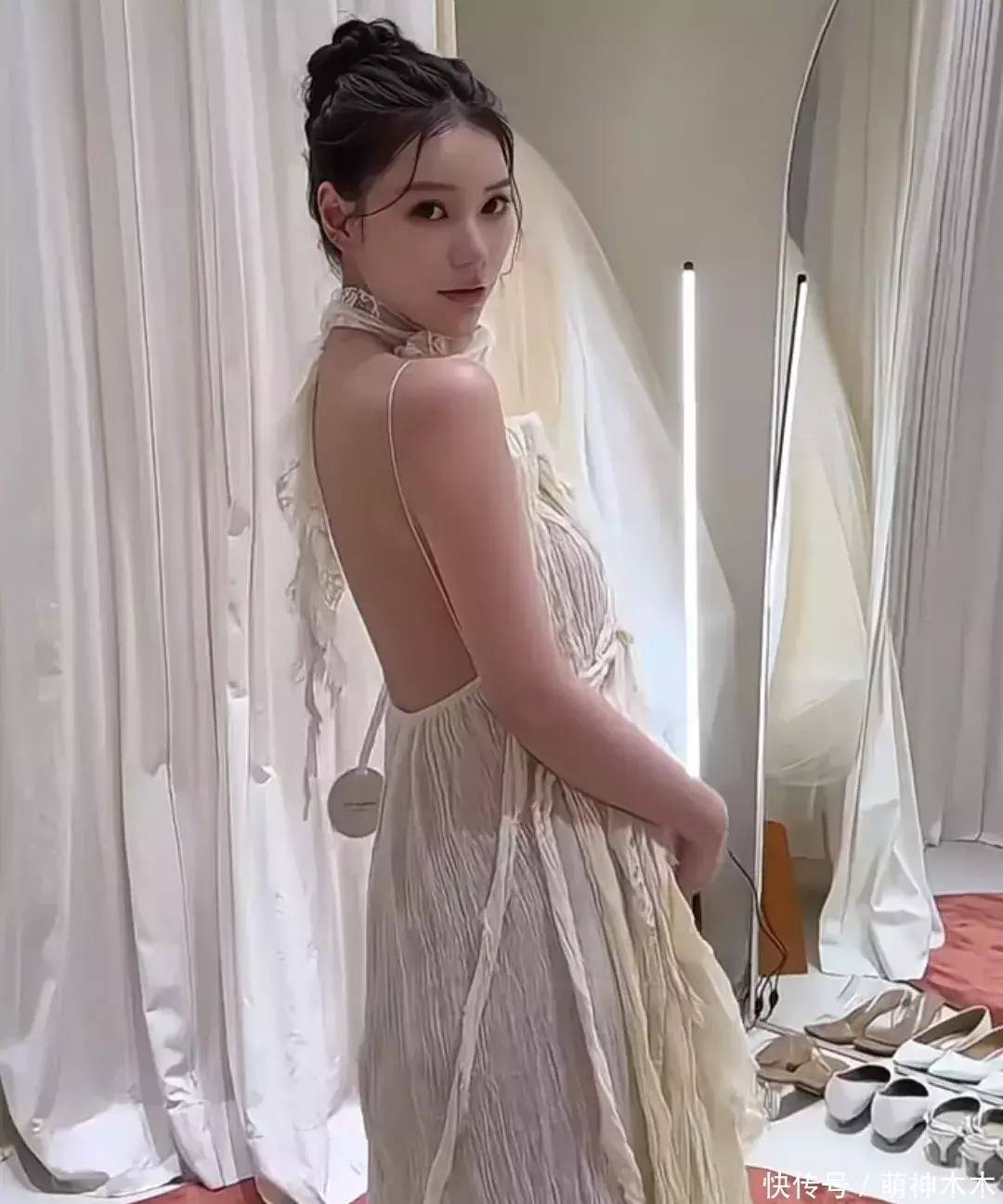 另一方则是蕾丝拼接露背吊带连衣裙,宽松的款式加上马筱梅侧对着镜头的拍照姿势,种种原因都让孕肚直接“隐形”了,她看上去一点也不像孕晚期的孕妇。只有她正面对着镜头时,大家才能顺着她双手满含保护意味的姿势注意到她的孕肚。