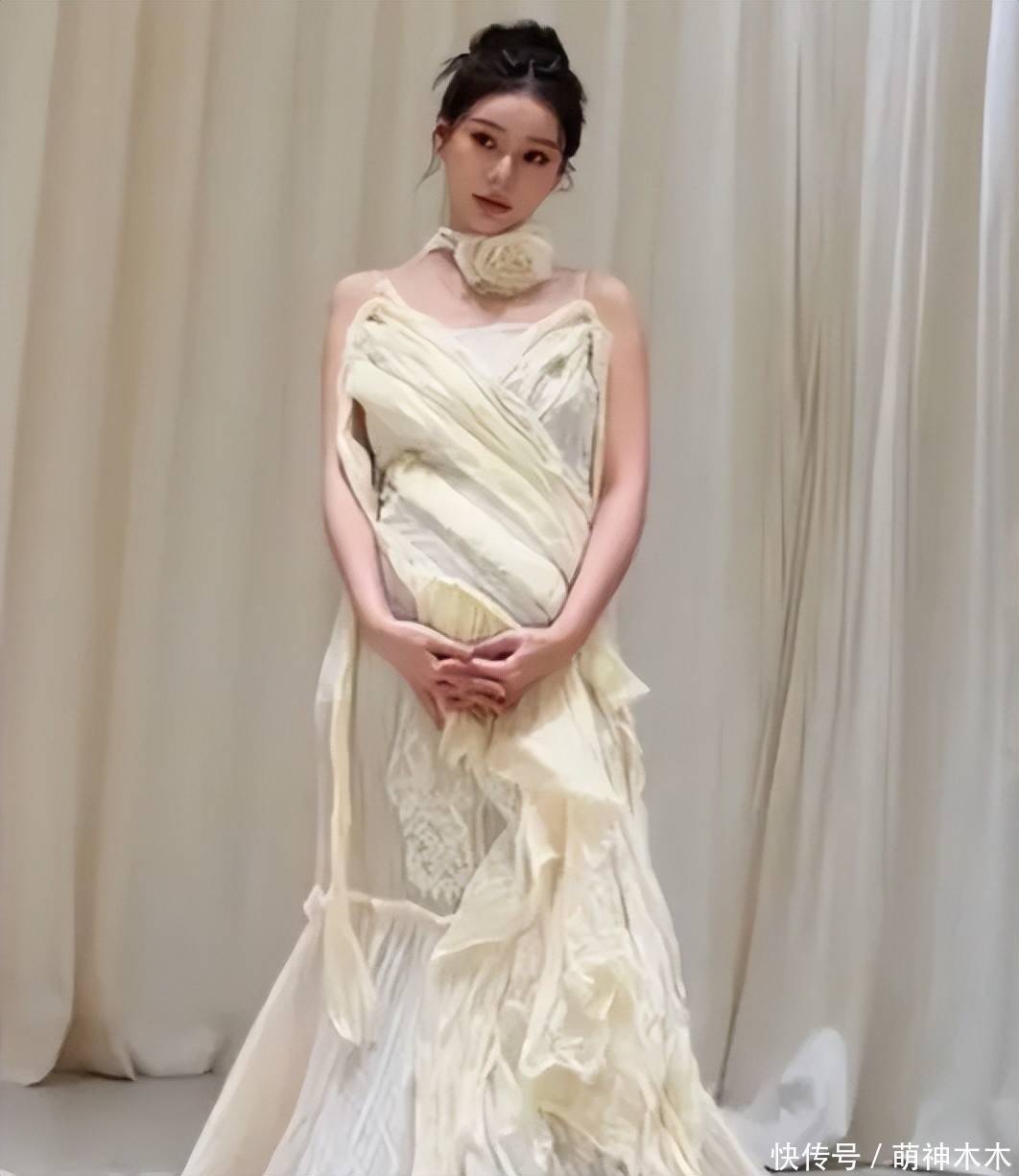 从被曝光的孕期试装可以看到,马筱梅身穿白色裹胸上衣,搭配同色的长裙,她将头发高高盘起,整个人温柔大方,有一种独属于孕期女性的母性美。马筱梅将双手交叉放在肚子下面,虽然已经到了孕晚期,但是她的孕肚并不大,只是腹部微微凸起。